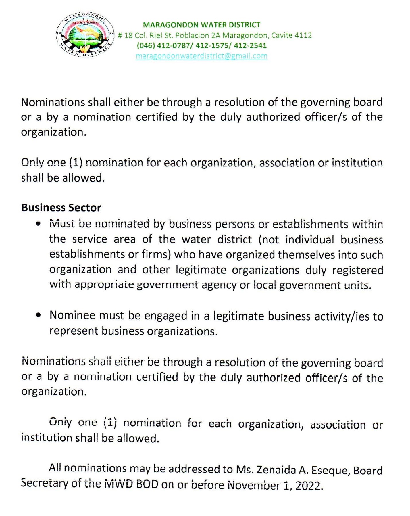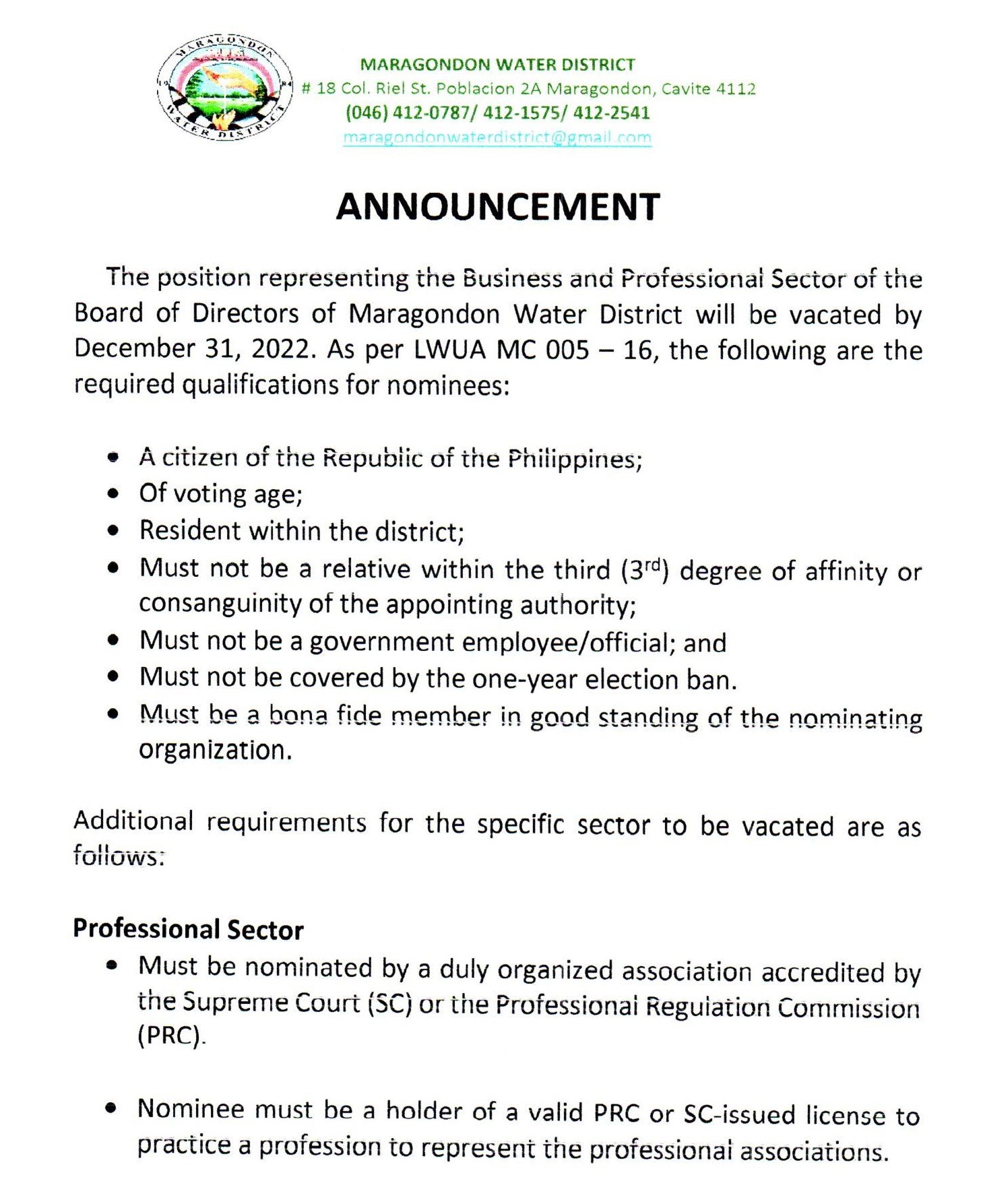 Customers may also send a message to the Official Page of Maragondon Water District on Facebook.