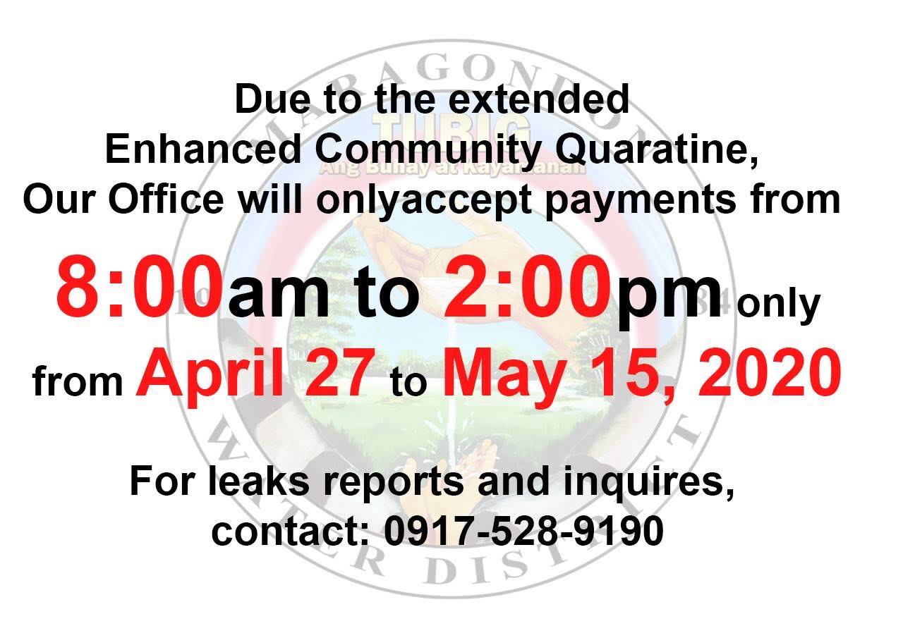 All water district concessionaires are hereby informed that due to the low power/voltage being supplied by Meralco since this morning (April 25, 2020), all MWD pumping stations are operating via generator set.