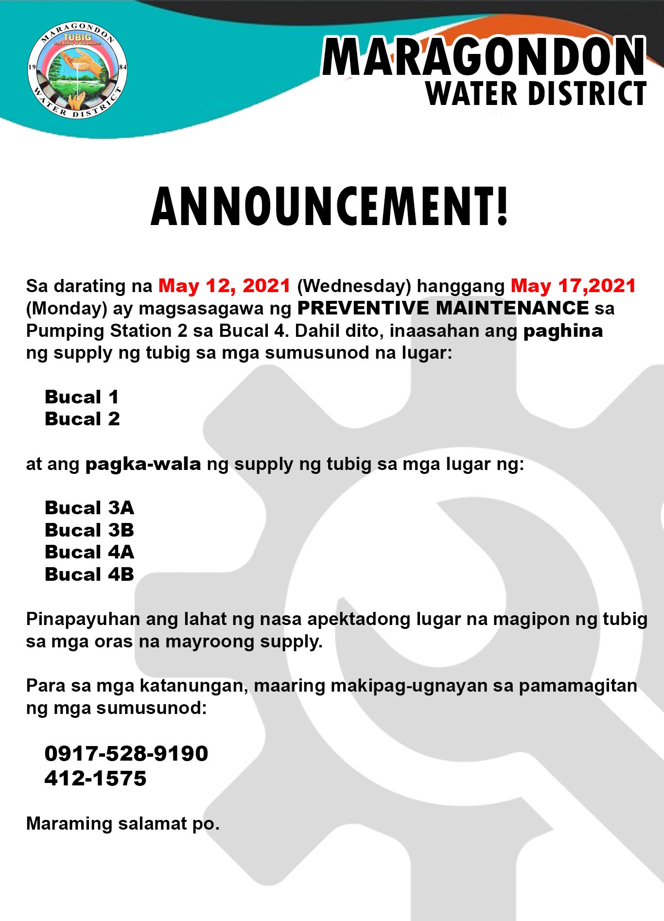 Service Interruption Advisory – Bucal (May 12-17, 2021)